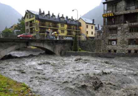 Vandpresset i Río Garona, der løber ud for landsbyen Pont d'Arròsha, var så kraftigt, at det rev et armeret depot med 4.000 liter flydende gas med sig. Chef for den catalanske vejrtjeneste, Oriol Puig, siger at der er faldet 112 mm i løbet af et døgn. Det er det værste regnskyl i juni i mere end 30 år.