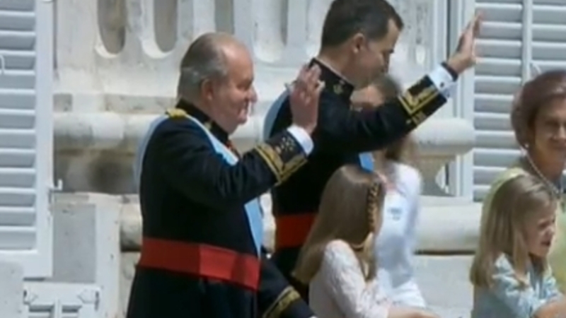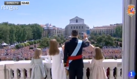 Alles øjne er rettet mod balkonen, hvor Spaniens nye konge træder frem