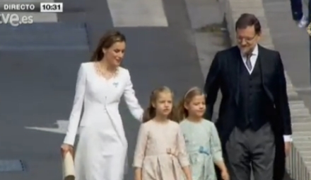 Premierminister Mariano Rajoy ledsager Dronning Letizia, kronprinsesse Leonor og prinsesse Sofia