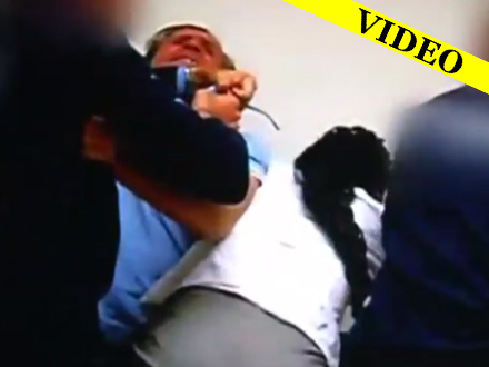 Og det hjalp hende ikke at stritte imod. Vagterne vred kvindens arme om på ryggen af hende og lagde hende i håndjern. Efterfølgende måtte manden have behandling for chok.