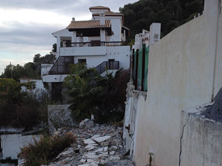 416 familier i luksusbebyggelsen Urbanización Carmenes del Mar i Cerro Gordo i Almuñécar er i fare for at miste hus og hjem, fordi skrænten under bebyggelsen langsomt smuldrer væk.