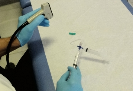 Ultralyds-scanneren og injektions-sprøjten med mikro-skummet
