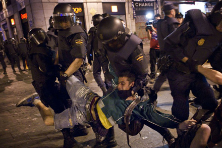 Titusinder demonstrerede i weekenden i en lang række spanske byer i protest mod økonomisk krise og sociale nedskæringer. Nogle steder protesterer folk endnu, men urobetjente har gjort brug af ny lov og anholdt flere.
