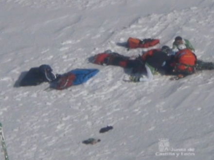 Klokken 13:47 i går modtog alarmcentralen i Castilla y León et opkald fra en bjergbestiger, som fortalte, at han kunne se, at tre personer var styrtet ned under den sidste etape inden toppen af det 2.592 meter høje bjerg.