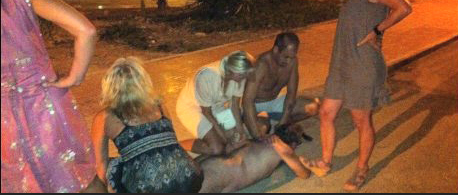 Manden snublede på et tidspunkt, men han kom op igen. Da han snublede anden gang, kastede de norske politikvinder sig over ham, og så var det slut.