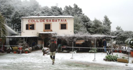 Snehøjden faldt søndag fra 900 til 400 meter, og der er kan i dag falde mere sne. På Lluc lå sneen i 700 meters højde, og det betød, at det lille kapel var dækket af en fint lag sne.