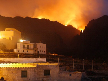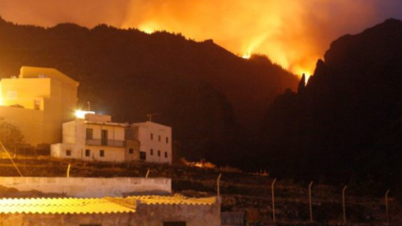 Branden brød ud søndag eftermiddag i Barranco del Infierno og har siden bredt sig med voldsom fart. Mere end 60 hektar skov er gået op i røg og flere veje er spærrede. Søndag aften var branden stadig ikke under kontrol.