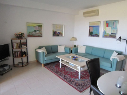 Lejlighed på 4.sal i første række til stranden. Lejligheden har flot udsigt over Middelhavet og strandpromenaden. Terrassen kan lukkes med glasgardiner.