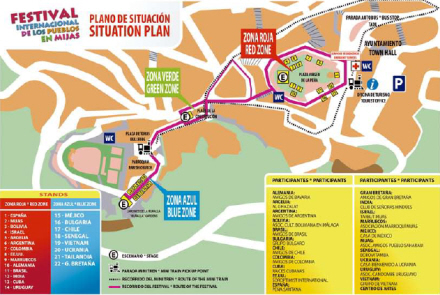 Arrangementet foregår i forskellige dele af byen, og du kan tage turisttoget mellem de forskellige zoner. Det har stop i den røde zone, Plaza Virgen de la Peña, i den blå zone, Jardines de la Muralla, og i den grønne zone, Plaza de la Constitución.