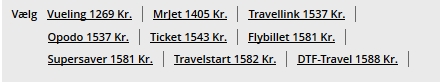 Efter du har valgt afrejsested, ankomststed, afrejsedato, hjemrejsedato og antal personer, kommer du automatisk til siden med alle mulighederne.