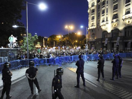 Lokalpolitiet og nationalpolitiet forhindrede demonstranterne at nå frem til Puerta del Sol