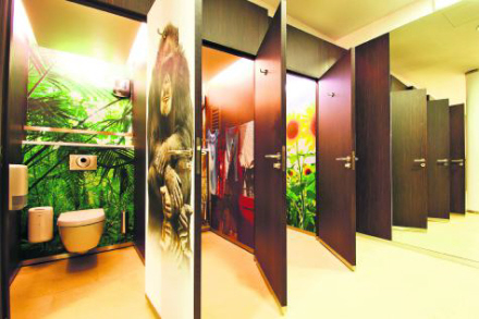 De nye tema-toiletter er udført i et attraktivt design med tegneseriefigurer og fotografier på væggene. Der er familie- og legeområder, ble-skiftesrum, handicap-toiletter i forskellige design og så drysser der sød musik ud af højtalerne mens man benytter toilettet.