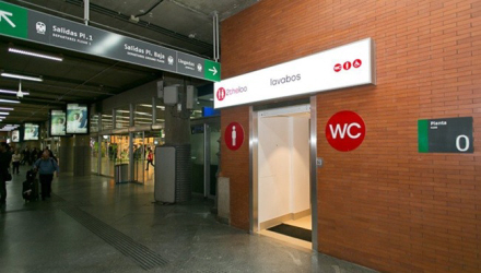 Selvom Madrids centrale Atocha-station har gratis toiletter ejet af jernbaneselskabet Adif, er der langt mellem offentlige toiletter på gaden i Spanien. Mange vælger derfor at gå ind på en bar eller cafe og købe en drink for at bede om lov.
