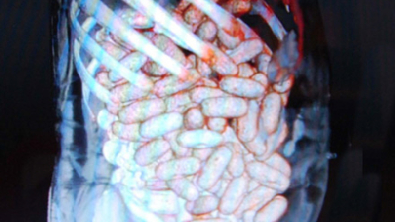 Efter at have undersøgt manden, besluttede tolderne, at en scanning af mandens mave var nødvendig – og her viste der sig at være jackpot. Den indeholdte masser af små ampuller med narko.
