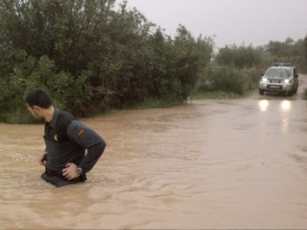 Det var lige ved at gå helt galt for en kvinde, der blev fanget i sin bil, da den blev taget med af vandmasserne. Det skete i går formiddag, da kvinden kom kørende ved Partida La Bodega i Moixent, Valencia. Politiet hørte tilfældigt kvinden skrige. På det tidspunkt var vandet trængt ind i bilen, og hun kunne ikke selv redde sig ud. Med assistance fra andre tililende lykkedes det for politiet at redde kvinden i sikkerhed.