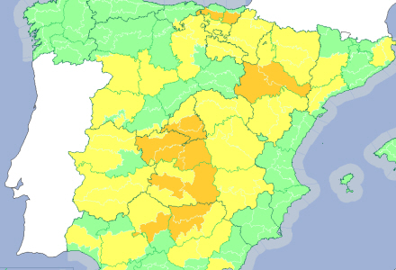 Der er udsendt hede-varsel for Madrid, Castilla-La Mancha og Aragón, hvor termometret i dag måler omkring 40 grader. Fra i morgen gælder varmevarslet yderligere for Extremadura, Castilla y León, La Rioja, Navarra og Baskerlandet, hvor indbyggerne også må døje med 40 grader. Ni provinser er i orange alarmberedskab og stort set halvdelen af landet i gult. Endnu er ingen dog i rødt, der er det højeste.