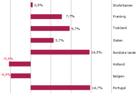 Derimod går Sydspanien tilbage med 2,1 procent og De Kanariske Øer med 1,4 procent.