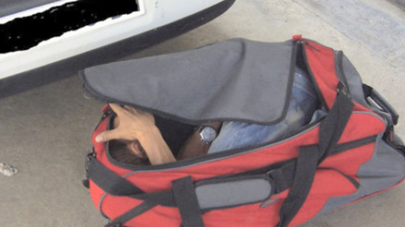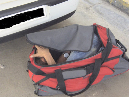 Tasken stod sammen med kufferter og poser i bagagerummet i en spansk indregistreret Seat Cordoba, som var på vej til Barcelona. Under en rutinemæssig gennemgang af bilens bagage, opdagede en af betjentene, at sportstasken bevægede sig. Og ganske rigtigt: I tasken lå en sammenkrøllet mand.