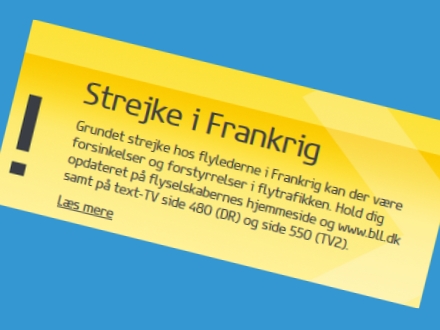 Én af Spanien i Dags opmærksomme læsere skrev til redaktionen onsdag morgen: Jeg sidder i Billund med aflyste og forsinkede fly på grund af fransk flyvelederstrejke som åbenbart også fortsætter de næste seks dage. Læseren var skuffet over vores artikel fra forleden om flyvelederstrejke. Vi ser på sagen.