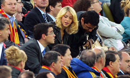 Den smukke colombianske sangerinde Shakira, var naturligvis med for at støtte kæresten, Gerard Piqué