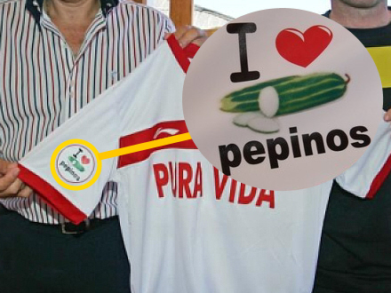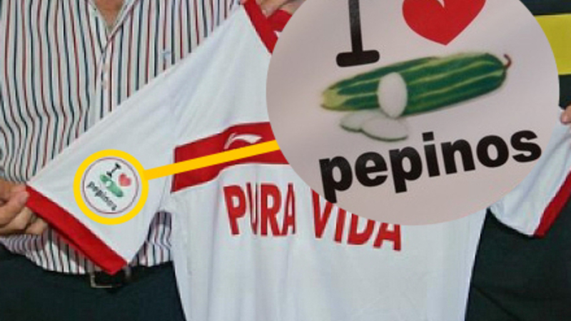 Normalt er det fodboldklubber, der søger sponsorer, men denne gang er det altså omvendt. Fodboldklubben C.F Sevilla er gået ind i krigen for spanske agurker med spillertrøjen med teksten: ”I love pepinos” (Jeg – hjerte - agurker).