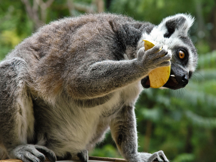Se lemurerne snacke på deres pind-is: