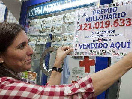 En ung bager fra det lille landsbysamfund Pilas i Sevilla Provinsen er som ved et trylleslag blevet mange-millionær. Manden, som er svend i forældrenes bagerbutik, er den heldige vinder af 121 millioner euro - og så en sjat...