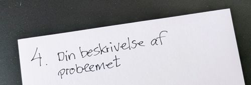 Tag et stykke papir og giv problemet/bekymringen et nummer og et navn. Nummeret er vigtigt, så at du altid ved, hvor mange problemer du har - eller har haft ...