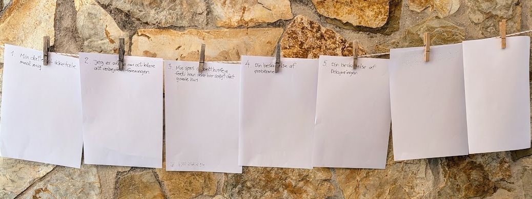 Man kan jo også godt lægge papirerne på et bord, men når de hænger på en snor, er det næsten ligesom højtidligt at være på kunstudstilling, hvor man virkelig står og filosoferer over kunstnerens mening med værket …