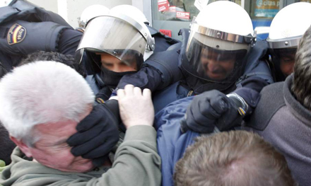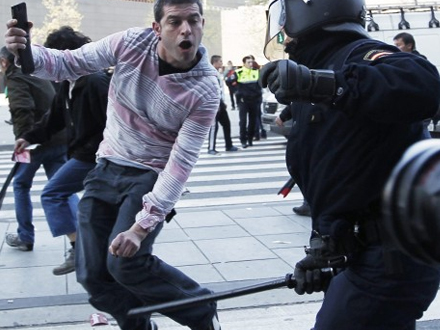 Både i Madrid, Barcelona og Valencia kom det til deciderede slagsmål mellem demonstranter og politi.
