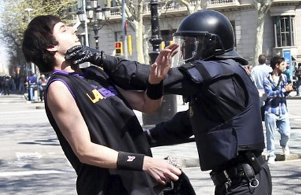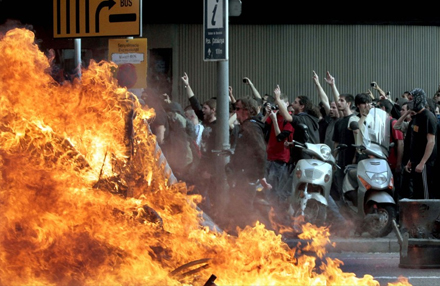 Protesterne udviklede sig ret voldeligt i Barcelona, hvor hætteklædte demonstranter smadrede banker og butiksfacader med hamre og sten og satte ild til i alt 225 containere i gaden. Demonstranterne smed også sten mod politiets pansrede mandskabsvogne og sparkede til dem, når de kom kørende nær demonstranterne. Lige fra morgenstunden skød politiet både med tåregas og gummikugler mod demonstranterne.