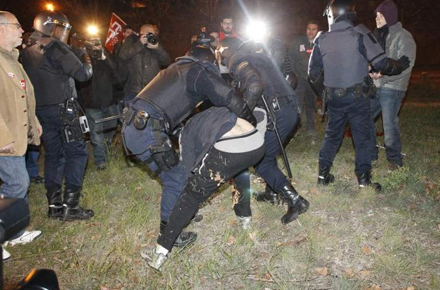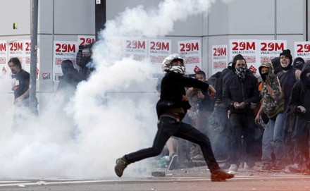 Generalstrejken mundede i går ud i voldsomme demonstrationer i landets største byer. Der er rapporter om 176 anholdelser og 116 sårede, heraf 70 betjente.