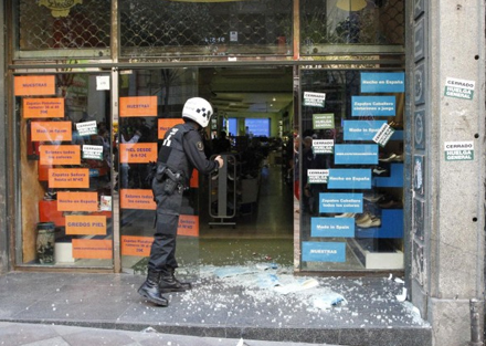 Vinduer i Corte Ingles, Barcelona bliver smadret