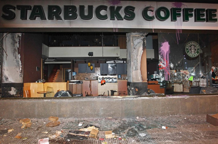 Vold, hærværk og ild i gaden