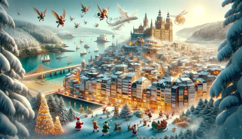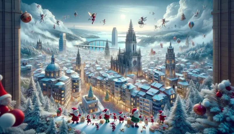 ChatGP’Ts kunstige intelligens - I, kendt som DALL-E - har skabt denne version af, hvordan Vigo, Pontevedra, Ourense, Lugo, A Coruña og Santiago de Compostela ville se ud, hvis de var et rigtigt julerige. De mest symbolske og besøgte steder optræder i et snedækket landskab og med typiske elementer fra juleforestillingerne, som rensdyr, nisser, engle eller julemanden.