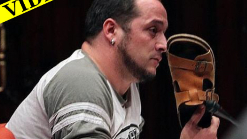 David Fernández fra det venstreorienterede parti CUP tog ordet, hævede sin sandal og leverede en følelsesladet og konfronterende kritik mod den tidligere PP-frontfigur.