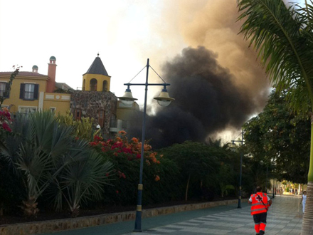Den 55-årige turist blev ramt af de voldsomme flammer, da hotellets gastank eksploderede i går morges. Kvinden blev forbrændt på hele kroppen og blev omgående fløjet til akut behandling på sygehus.