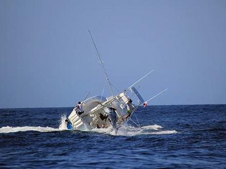 De mange kilo var desværre mere, end båden kunne klare, så den begyndte at tage vand ind. Det endte med at båden kæntrede. Heldigvis for de fire mand på båden blev de reddet af en båd, der var i nærheden.