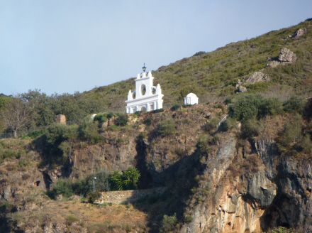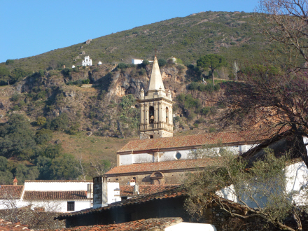 Nu gælder det så hovedbyen Aracena, men på vejen derop skal vi lige op på det specielle udsigtspunkt Peña de Arias Montano, der ligger lige bag ved Alájar. Man kommer op til udsigtspunktet ved at køre til venstre lige efter Alájar. Et par hundrede meter oppe ligger udsigtspunktet med et lille kapel og nogle boder, hvorfra du kan købe forskellige lokale produkter som skinke, honning og kastanjer.