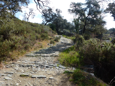 Dele af brolægningen stammer helt tilbage fra romernes tid, så du bliver hele tiden mindet om, hvilket historisk område du befinder dig i. På et tidspunkt krydser stien et lille vandløb og derefter jernbanen, og kort efter kommer man til landsbyen Acebuche – cirka fire kilometer fra Almonaster.