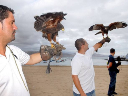 Fuglene er klar til at flyve i området i omkring to uger, for at forsøge at skræmme duerne væk fra byområderne og strandene.