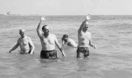Fraga bader ved Palomares for at vise, at vandet er sikkert ,efter at to amerikanske fly med atomvåben var kollideret