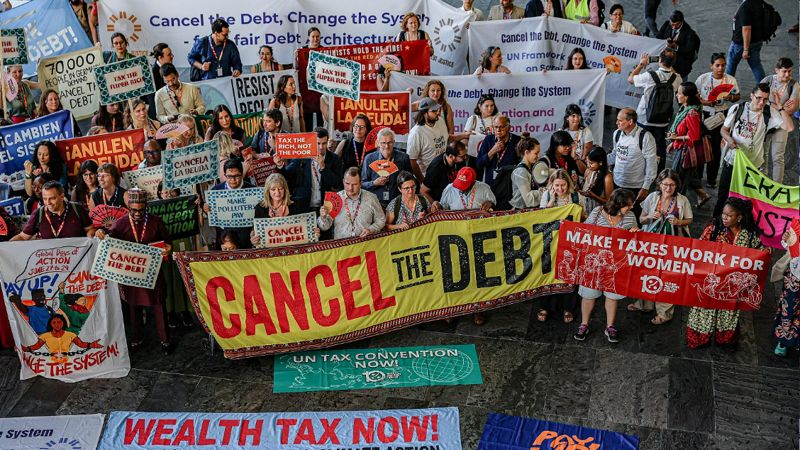 - Der er ingen bindende FN-mekanisme til gældsrestrukturering eller forpligtelser til annullering, kun en anbefalingsproces, kritiserer Nkwatsibwe topmødets endelige tekst. De foreslåede planer og det bløde sprog udgør falske løsninger, der skjuler dybe strukturelle problemer, siger han, som det uretfærdige kreditvurderingssystem.