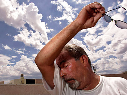 Efterhånden som den varme luft trænger ind fra vest, stiger termometeret gradvist fra de - efterhånden normale - 36 grader til 44 grader. Myndighederne advarer indbyggerne mod varmen og opfordrer alle til at holde sig i skyggen. Varmest bliver fredag, hvor termometret flere steder stiger til 44 grader.