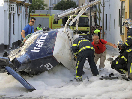 Meget tyder på, at piloten mistede kontrollen, netop som helikopteren befandt sig over Puerto de Santa María, som har 88.000 indbyggere. Piloten forsøgte at nødlande på en tom grund midt i byen, men ramte i stedet kirkens tag og styrtede ned midt på gaden.