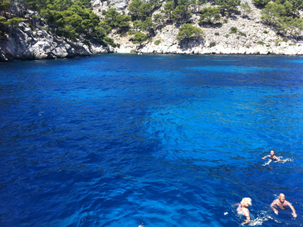Klipperne i baggrunden er gode at hoppe i vandet fra