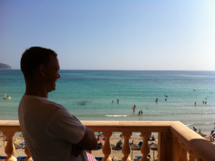 Kathrines storebror, Henrik, nyder Ca’n Picafort fra altanen