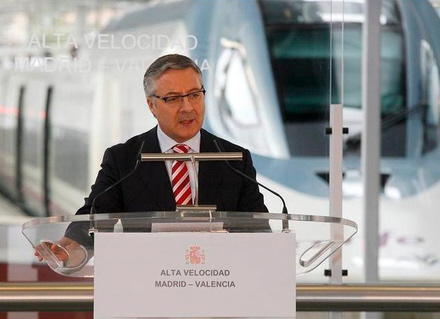 Udviklingsminister, José Blanco, med AVEN i baggrunden. Tophastighed: 350 km. i timen