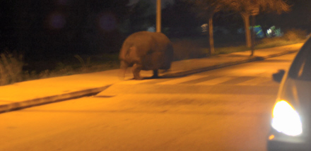 De fleste naboer nøjedes med at betragte det store dyr bag vinduernes tykke – og trygge- glas, mens andre spang ind og gemte sig i bilen og ventede på, at dyret skulle forsvinde igen.