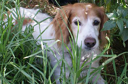 Ewa er en meget selskabelig hund og vil typisk holde sig tæt på folk, men denne dag har hun åbenbart set en hare eller lignende og er løbet efter den.